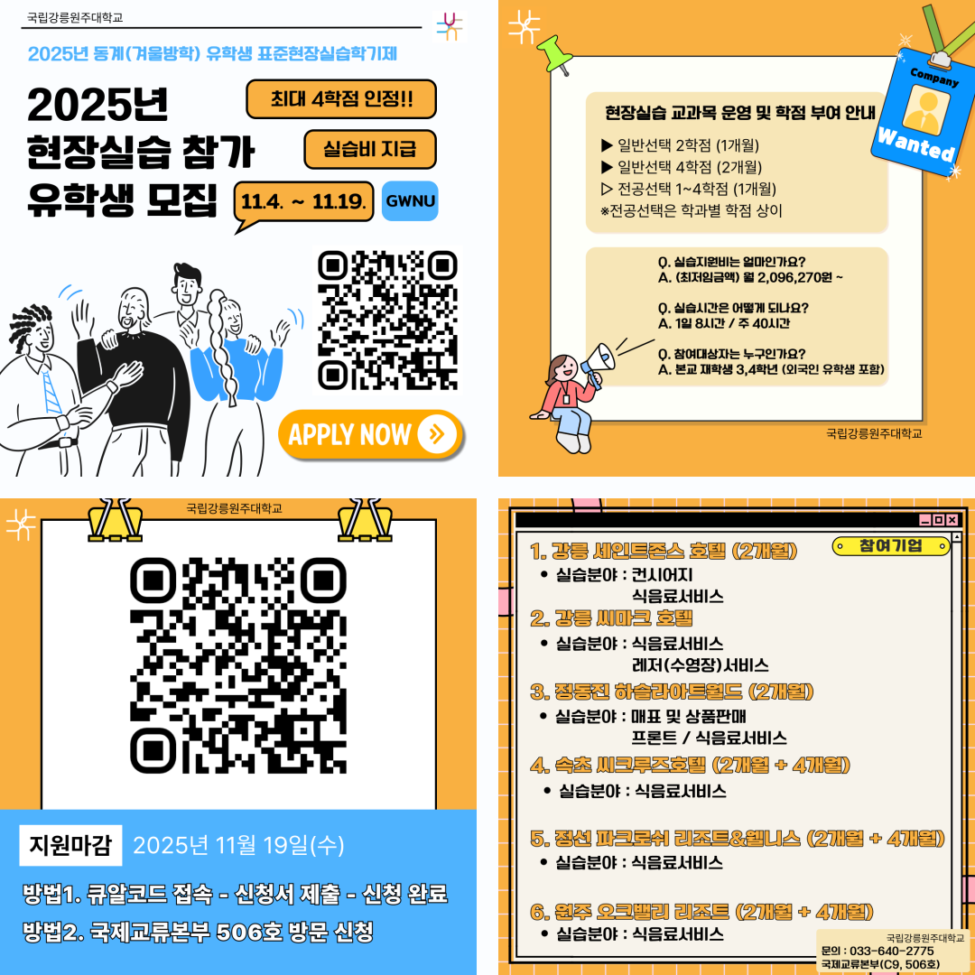 ※ 자세한 사항은 **「[현장실습지원센터] 2025학년도 동계 현장실습학기제 모집안내」**를 참고하시기 바랍니다.
