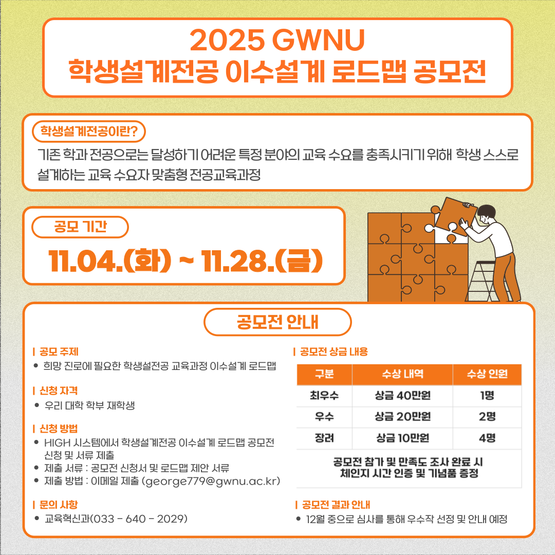 2025 GWNU 학생설계전공 교육과정 이수설계 로드맵 공모전 안내